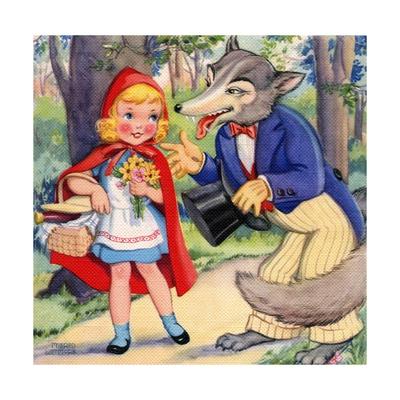 Little Red Riding Hood and Big Bad Wolf in Woods Giclee Print at AllPosters.com