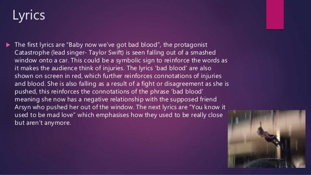 Bad Blood Song Meaning. Cause baby now we got bad blood You know it used to be mad love So take a look at what you've done Cause baby now we got bad blood. Responding to the rampant speculation that her hit song Bad Blood was about rival pop star Katy Perry, Swift addressed it directly.